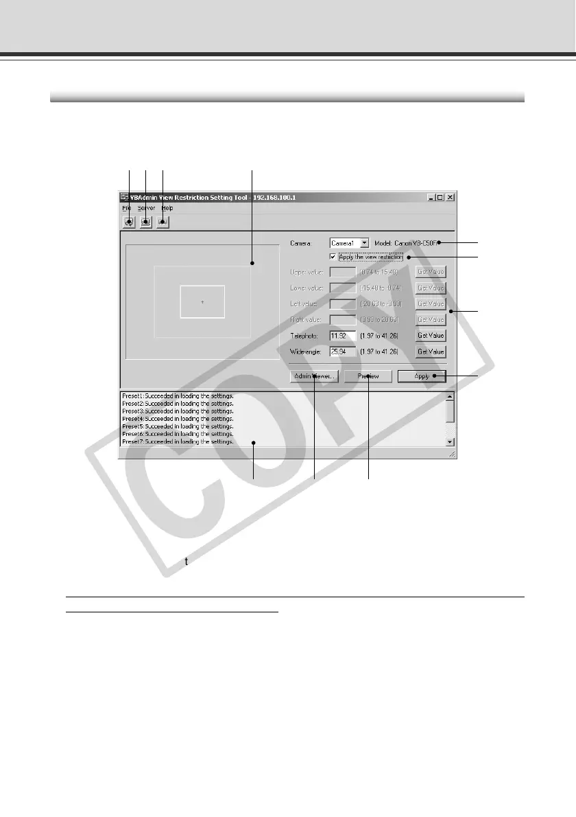 The View Restriction setting value set and applied with this tool is saved to the VB-C50FSi/VB-