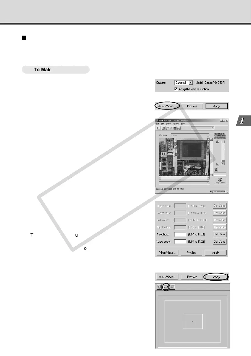 Admin Viewer can be used to set the view restriction while confirming camera images.