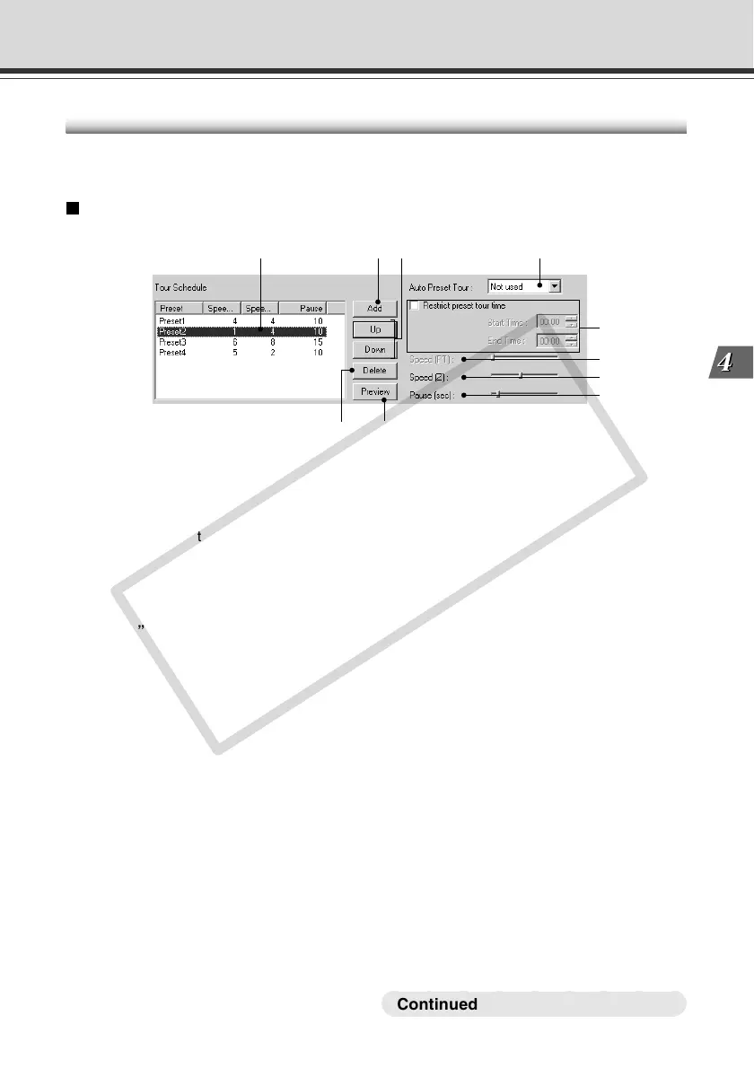 Preset Tour. The Preset Tour commences from the preset at the top of the list.
