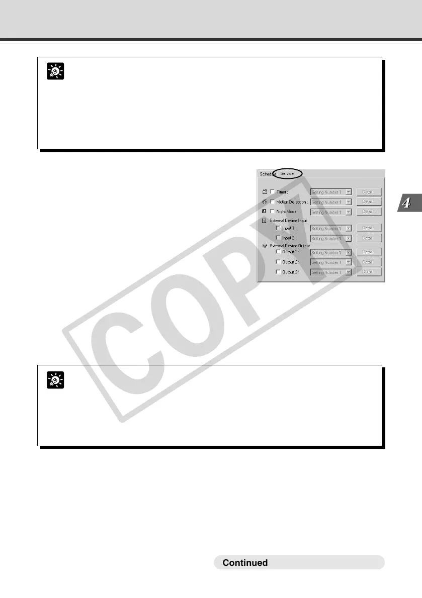 ● A setting number entered from the Service Setting tab in the Schedule Setting