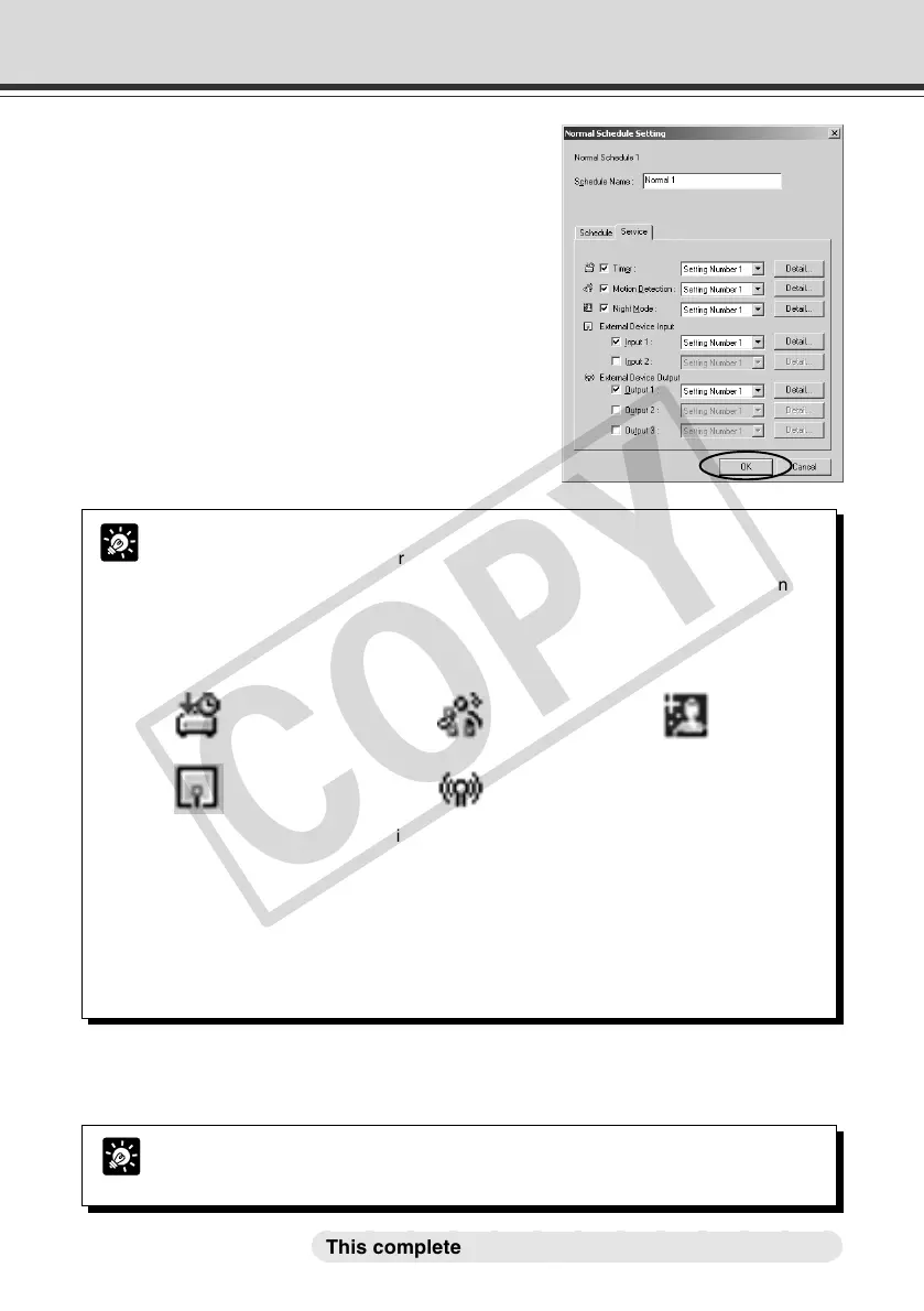 ● An icon for the service you have set up appears in the schedule track in the calendar.