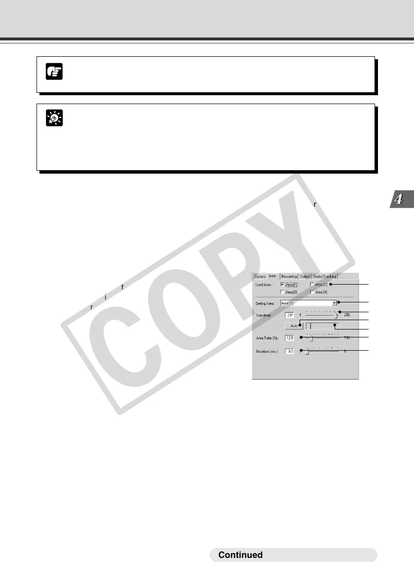 in each area frame. In Setting Area, select a setting number.