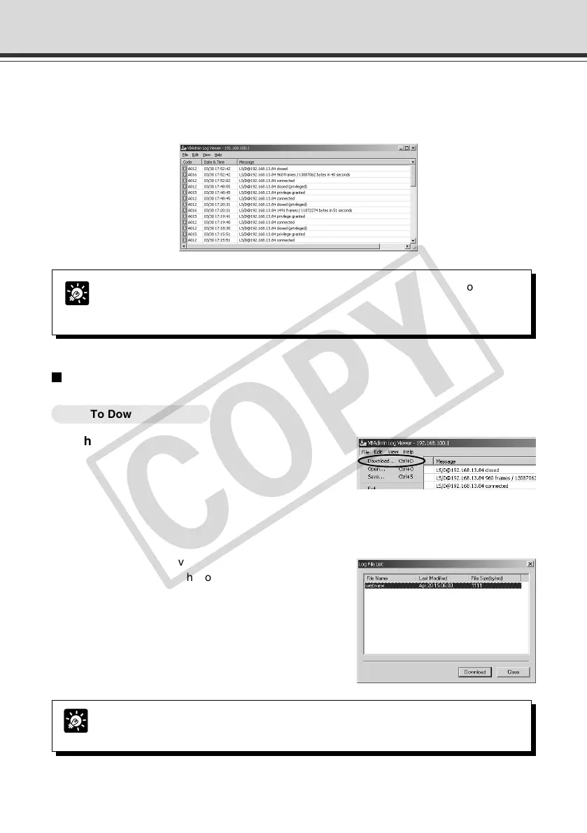 ● The Log Viewer is only for viewing logs and cannot be used to delete logs.