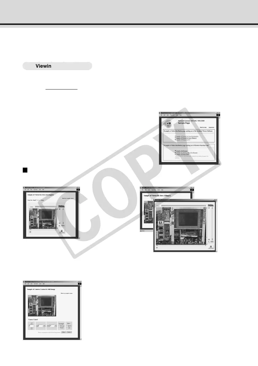 Ready-made video distribution sample pages are provided with the VB-C50i/VB-C50iR. Follow