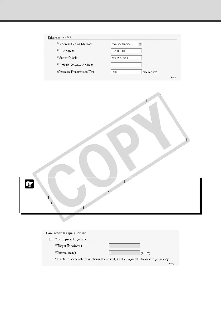 for “IP Address”, “Subnet Mask” and “Default Gateway Address”. If you select “Manual Setting”,