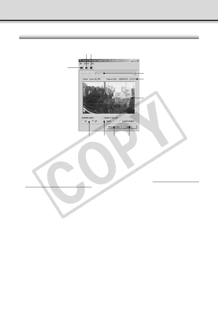 Sends panorama pictures to the VB-C50i/VB-C50iR and reloads them. After taking a panorama