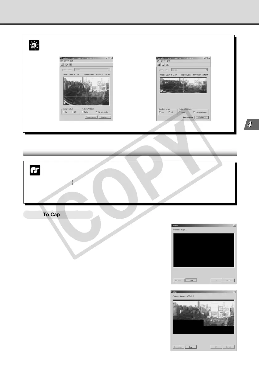 The entire panorama picture area is displayed during capturing. If the VB-C50i/