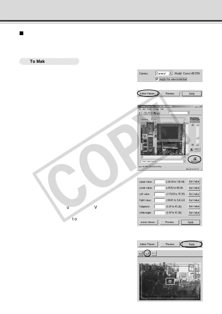 Admin Viewer can be used to set the view restriction while confirming camera images.