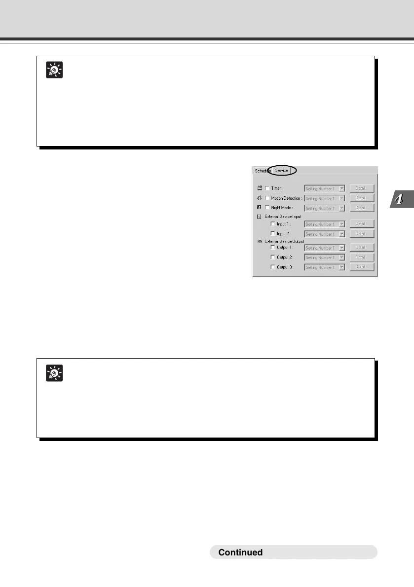● A setting number entered from the Service Setting tab in the Schedule Setting