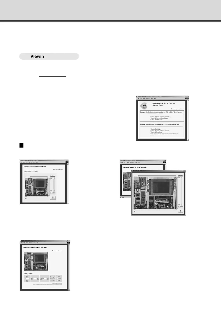 Ready-made video distribution sample pages are provided with the VB-C50i/VB-C50iR. Follow