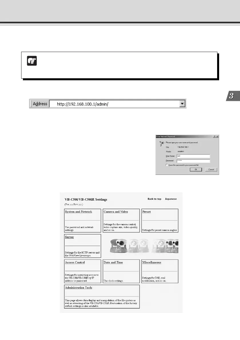 Alternatively, access the top page of the camera server (→ P.2-10) and click the “Setting