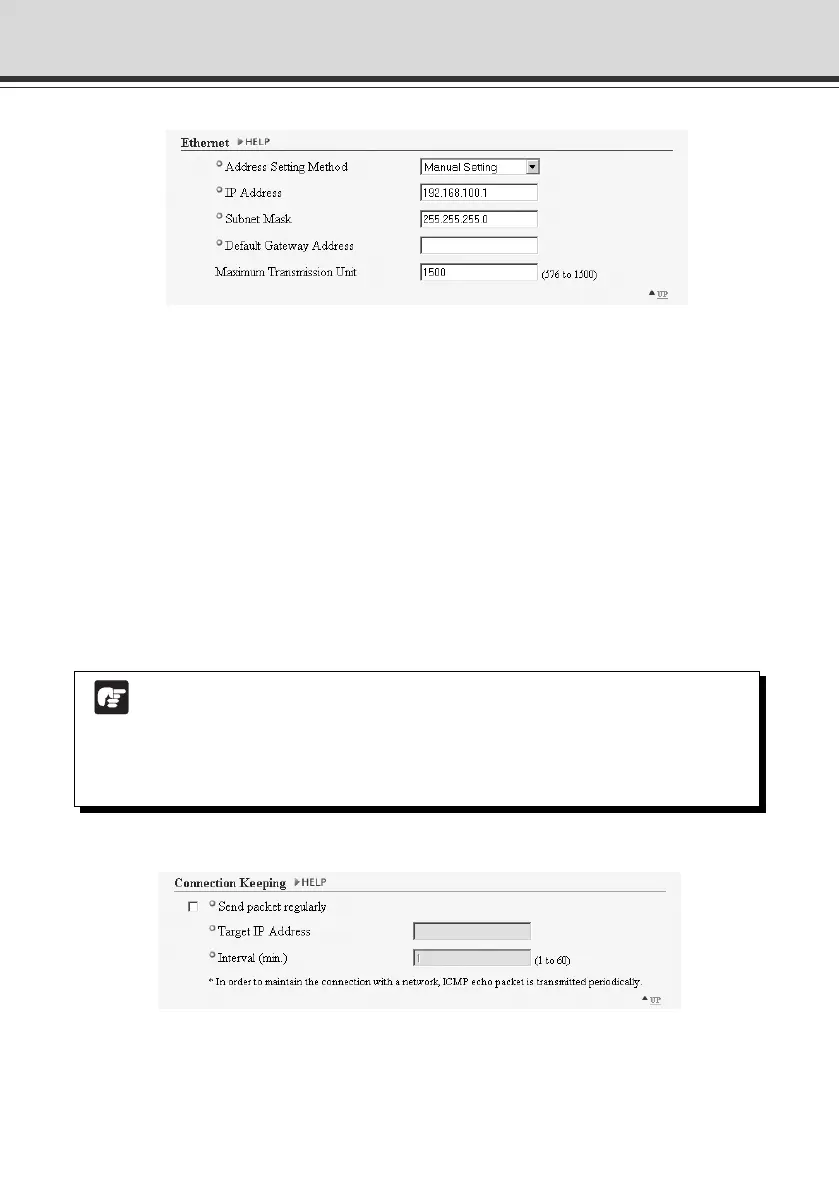 for “IP Address”, “Subnet Mask” and “Default Gateway Address”. If you select “Manual Setting”,