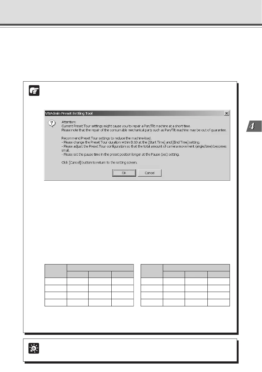 Example: Speed (PT):1, Pause time: 30 seconds, Pan moving range (Angle): ±50°=