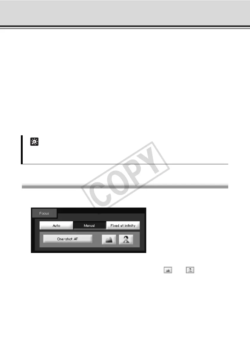 Select the focus setting from [Auto], [Manual] and [Fixed at infinity].