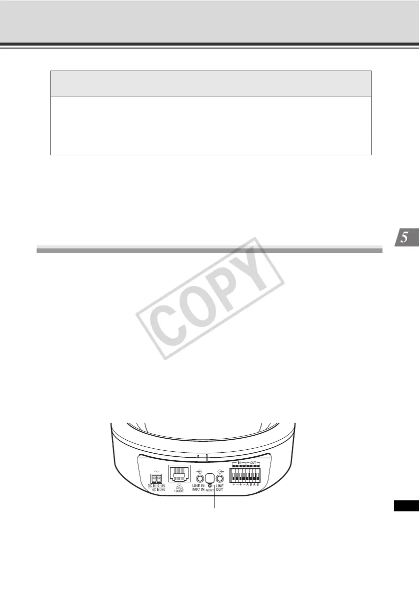 cannot operate the camera via the network. In this case, press the reset switch at the back of the