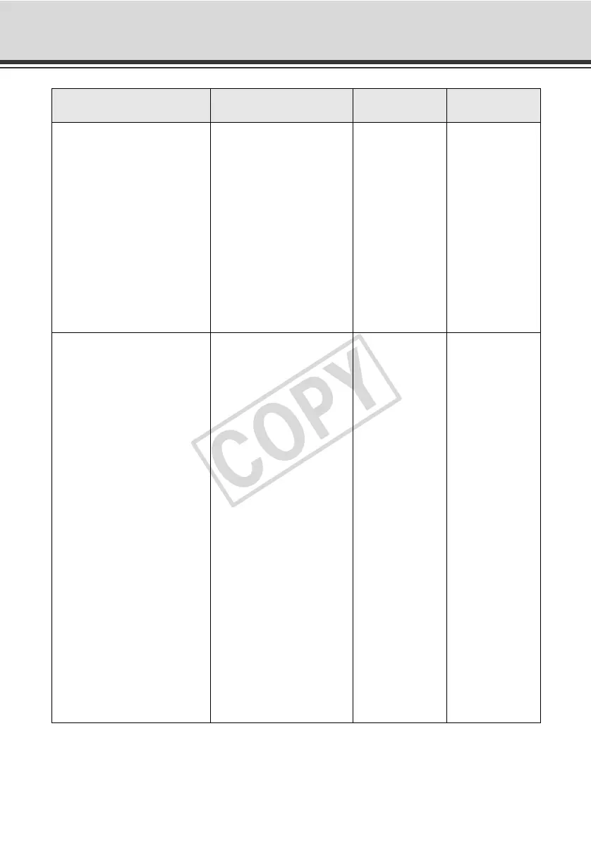 List of Factory Settings