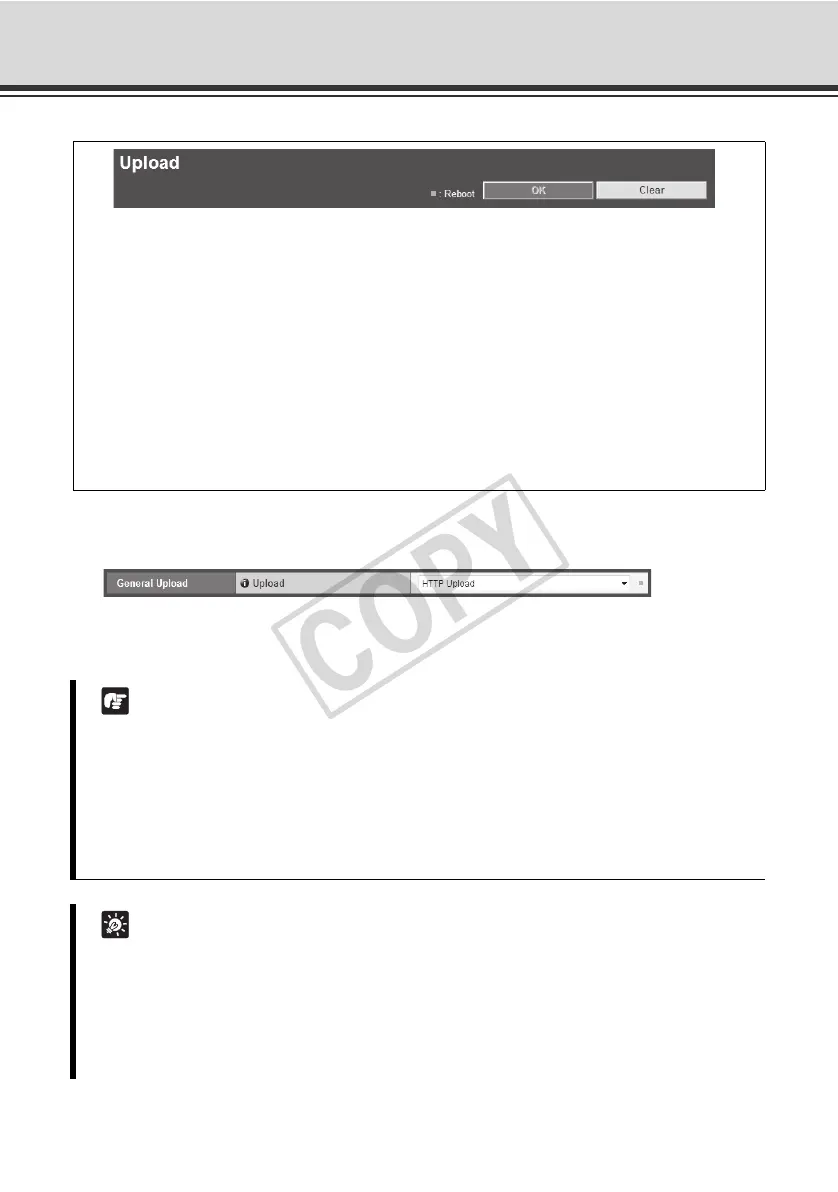 Select [Upload Disabled], [HTTP Upload] or [FTP Upload] as the upload mode.