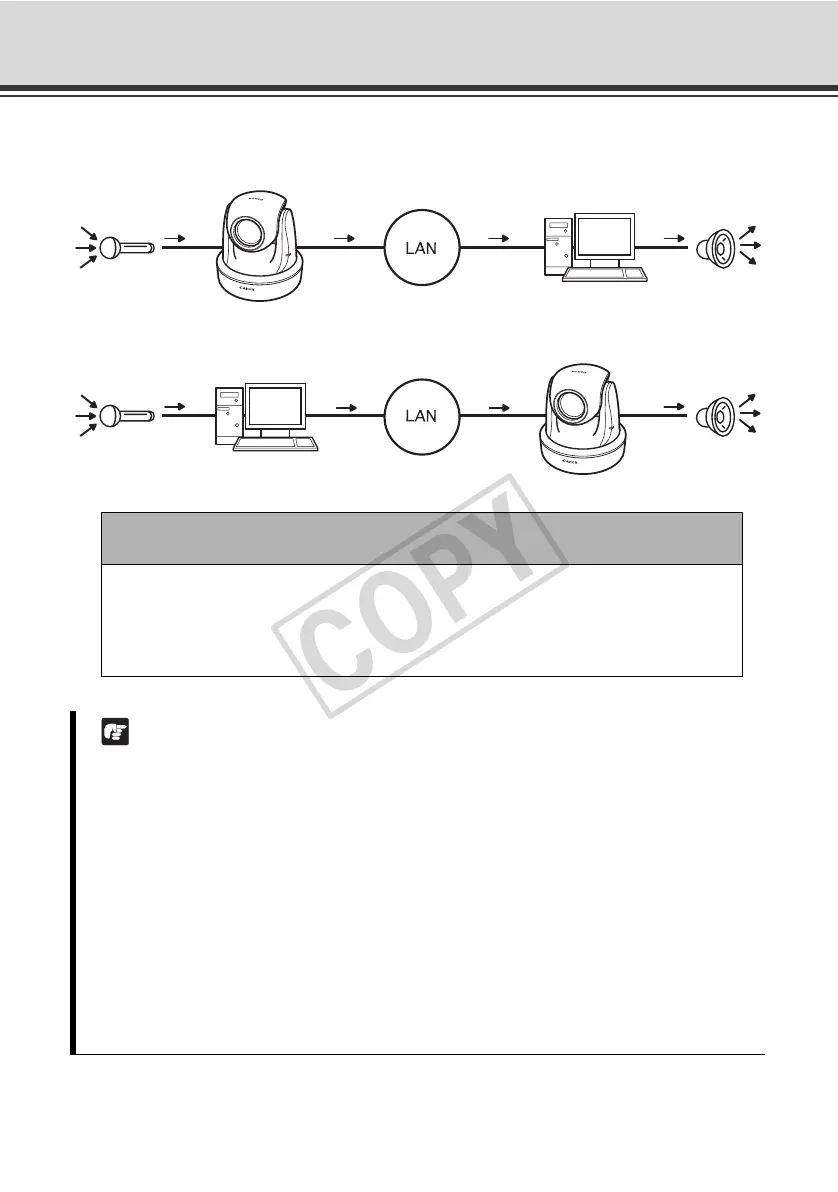 z To output audio from the audio output terminal of the camera, send audio from VK-Lite