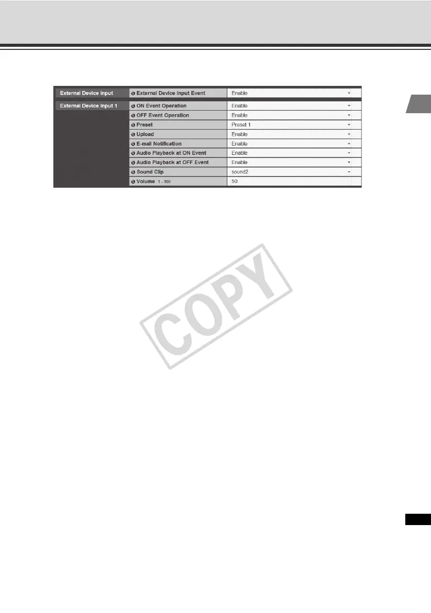Select whether to [Enable] or [Disable] external device input events.
