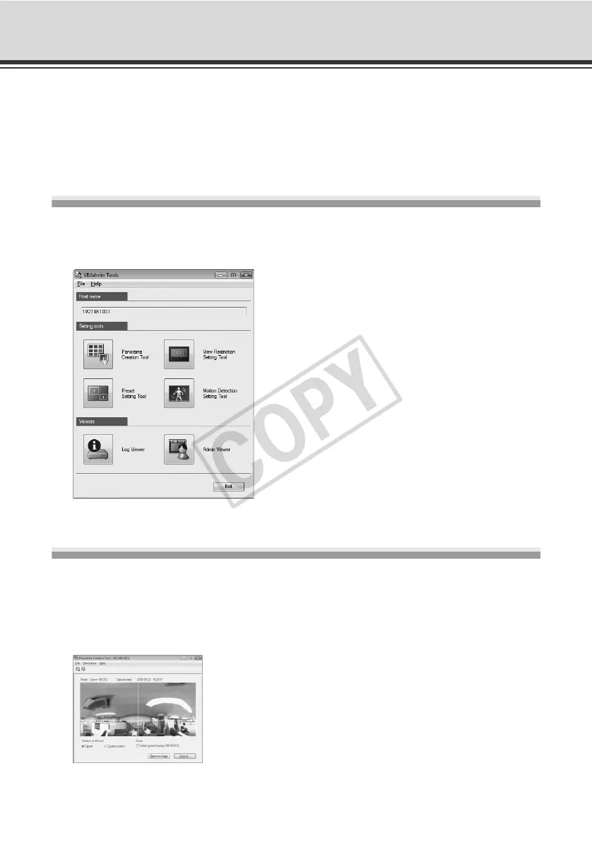 Setting Tool], [Preset Setting Tool], [Motion Detection Setting Tool], [Log Viewer] and [Admin