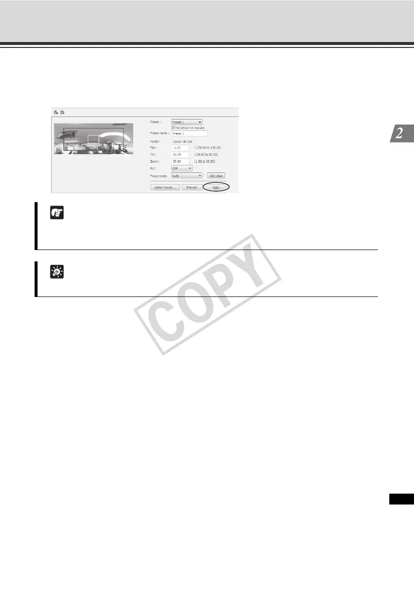 If preset tour is used, do not use the motion detection function. Also note that when [Auto is
