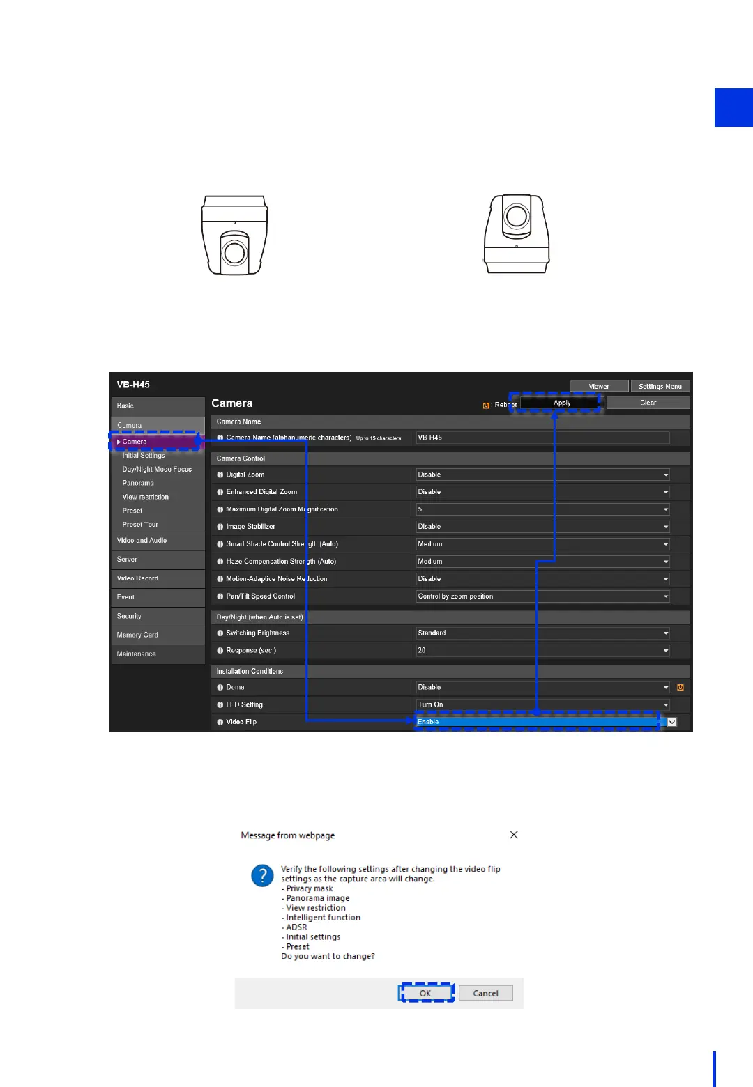 In the [Installation Conditions] section, change [Video Flip] to either "Enable" or "Disable".