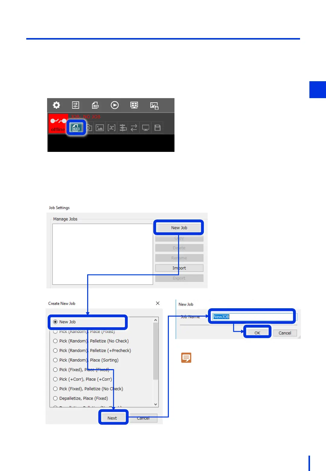 The Job Settings window opens. Press the [New Job] button, and select [New Job].