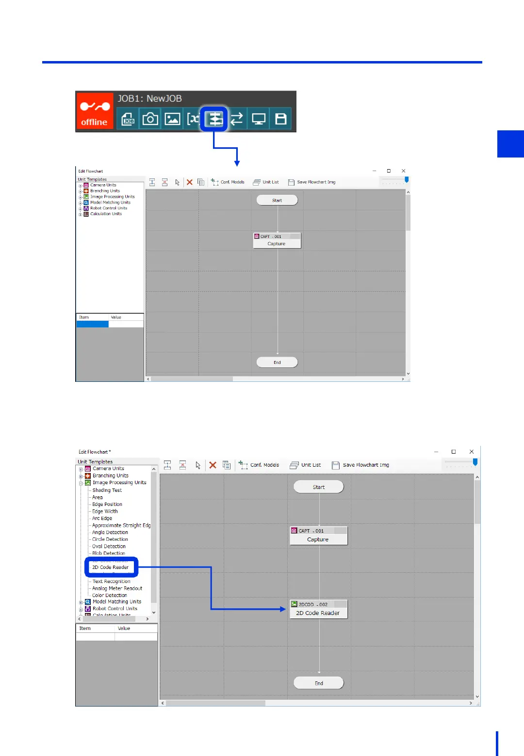 From the list of unit templates on the left, drag & drop [2D Code Reader] into the