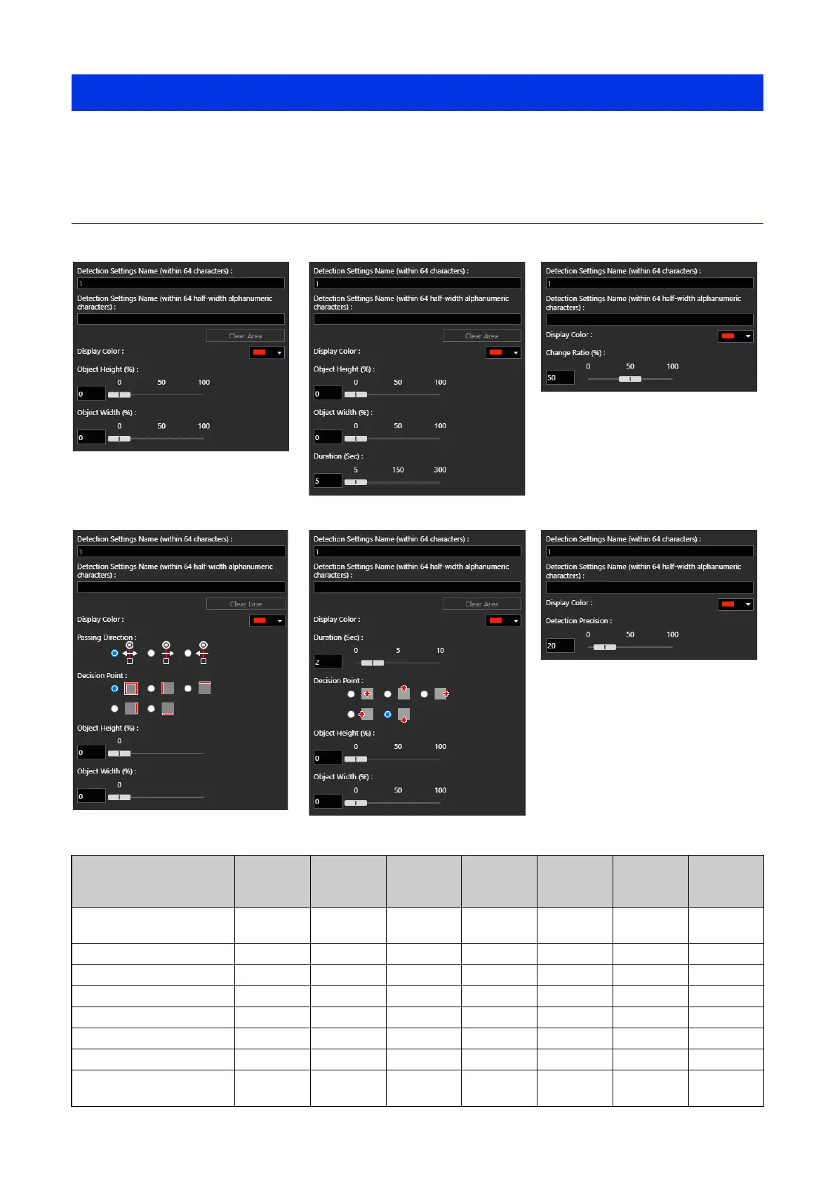 In [Detection Settings], detection conditions of each detection and action at detection are set.