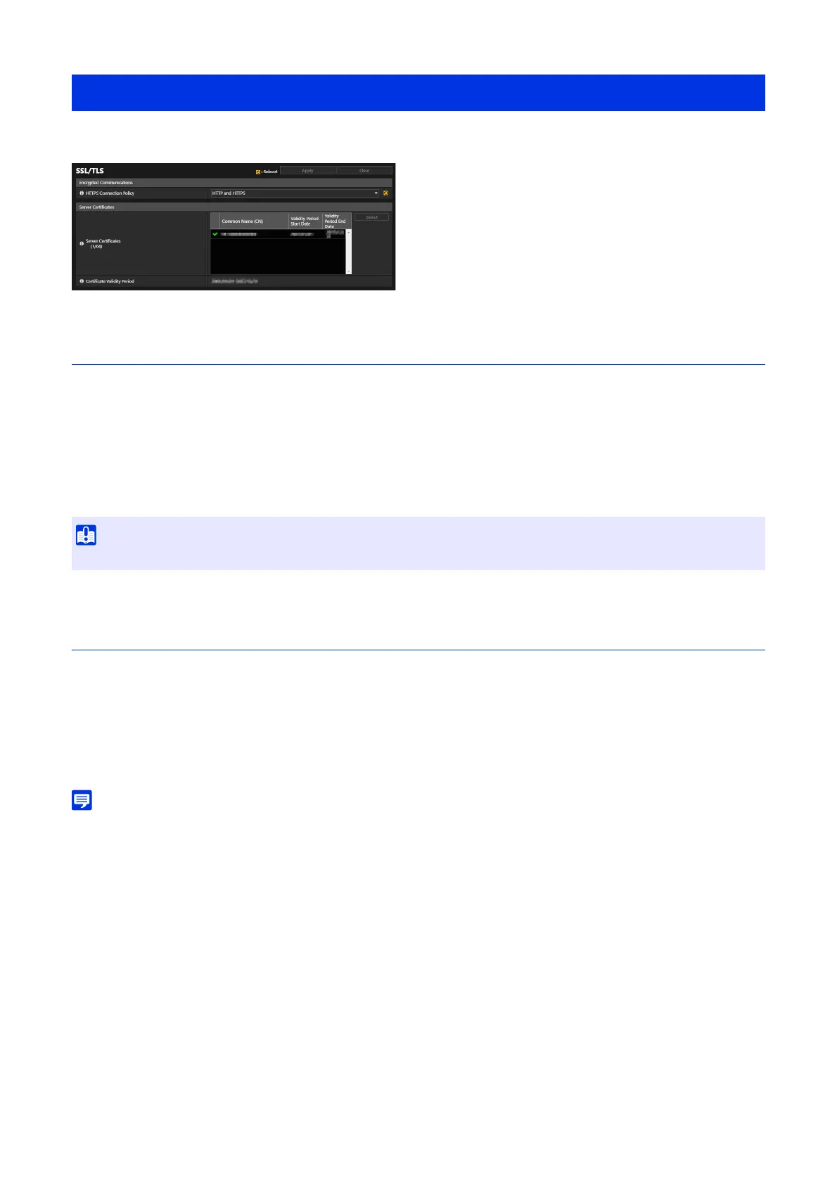 Select a certificate to use from the certificates registered in [Security] > [Certificate Management] > [Server/Client