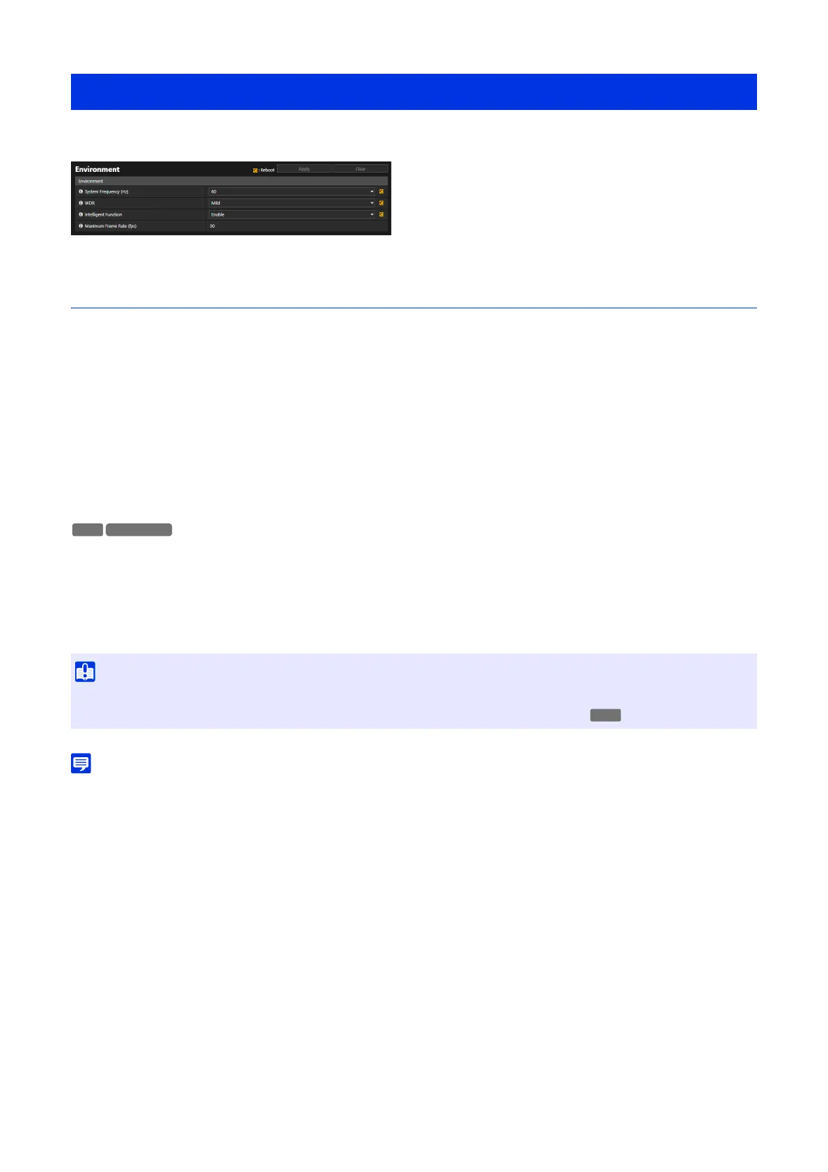 Set the system frequency, WDR, or intelligent function, or display the maximum value for frame rate.