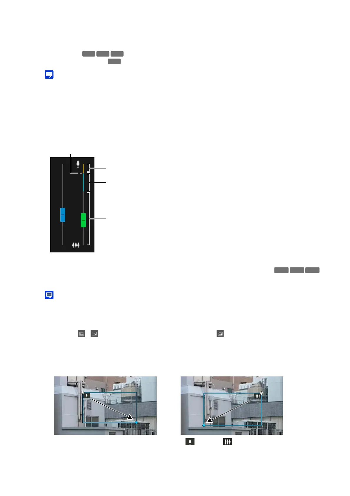 When operating in Area Zoom mode, an icon (zoom in: ; zoom out: ) is displayed in the frame.