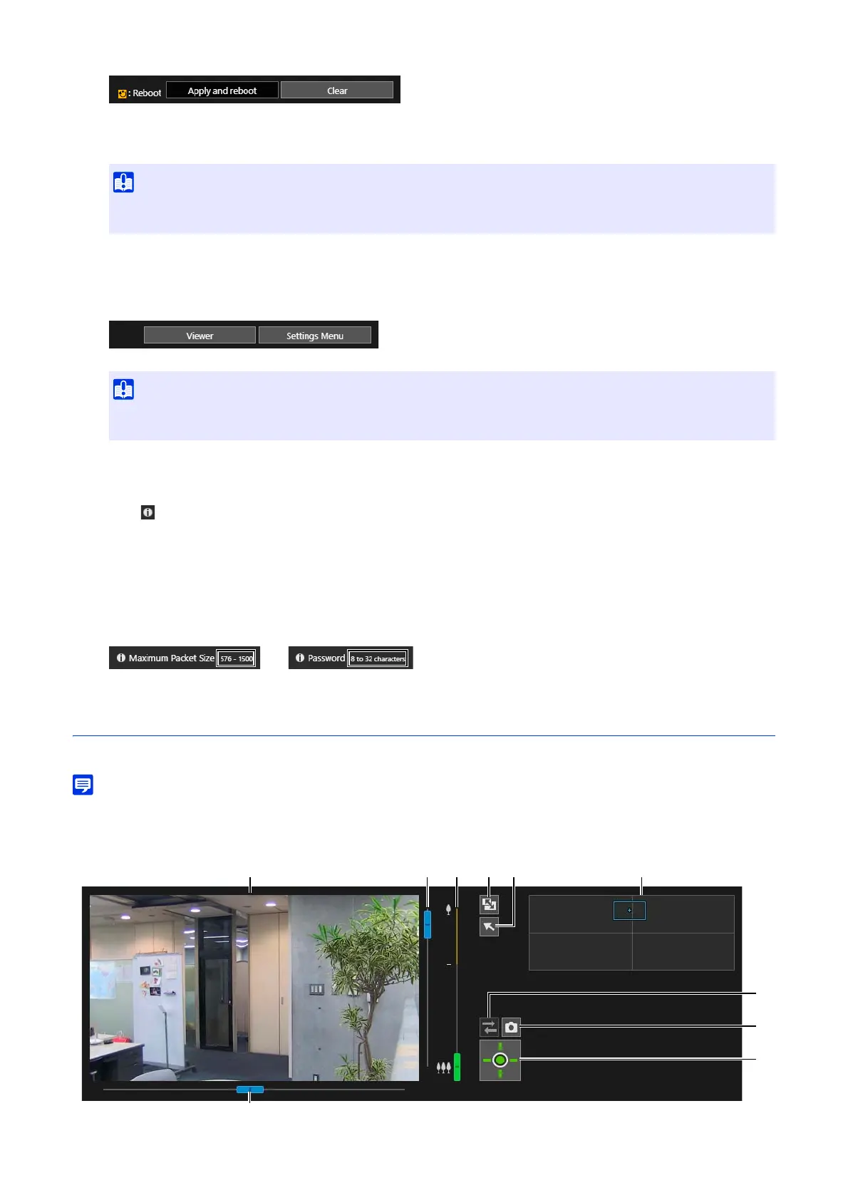 • Other users cannot access the Viewer while video is being displayed on the Settings page. Also, video cannot be displayed or