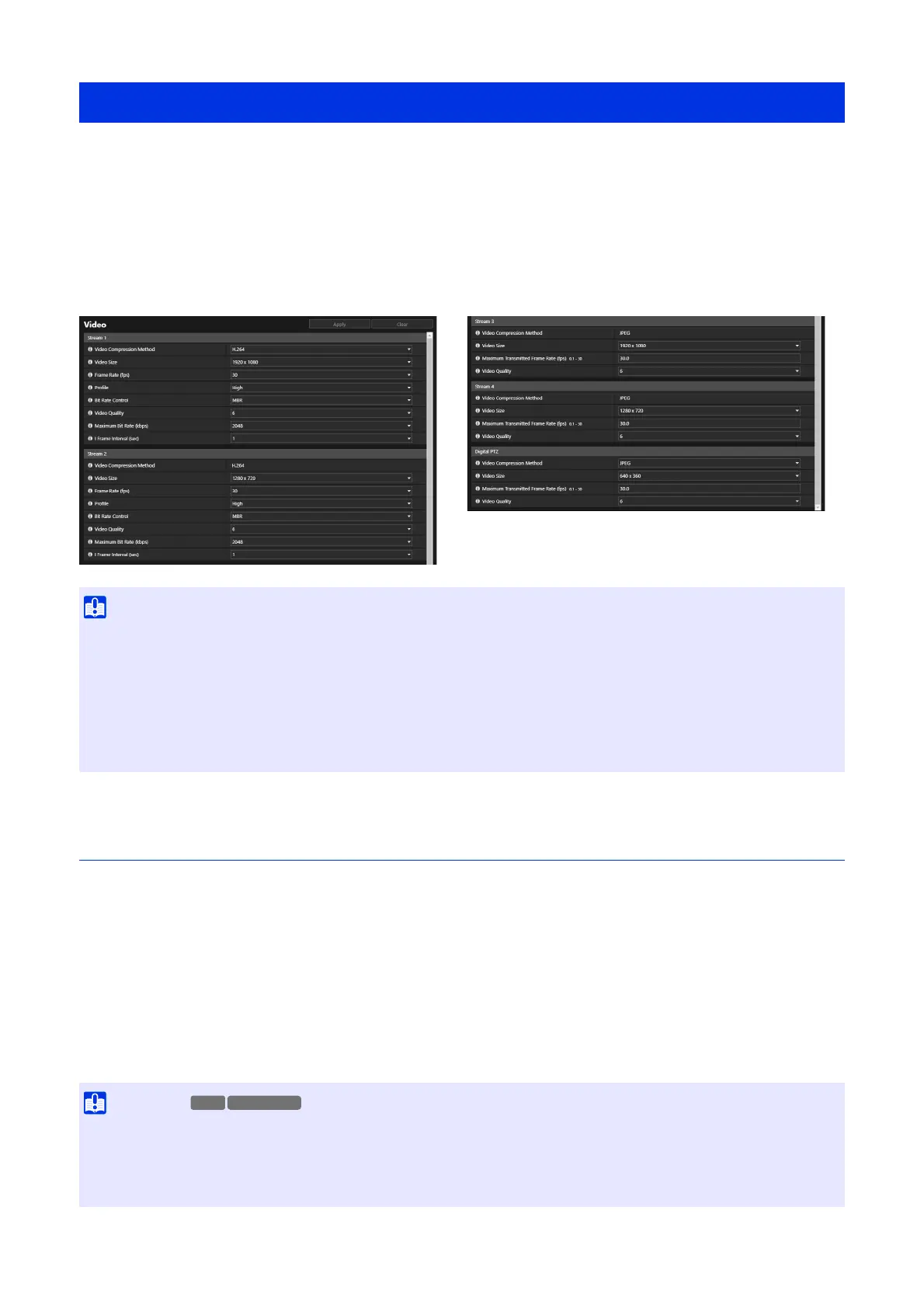 • Ensure that the total frame rate of streams for transmission does not exceed 60 fps (at system frequency 60 Hz) or 50 fps (at system