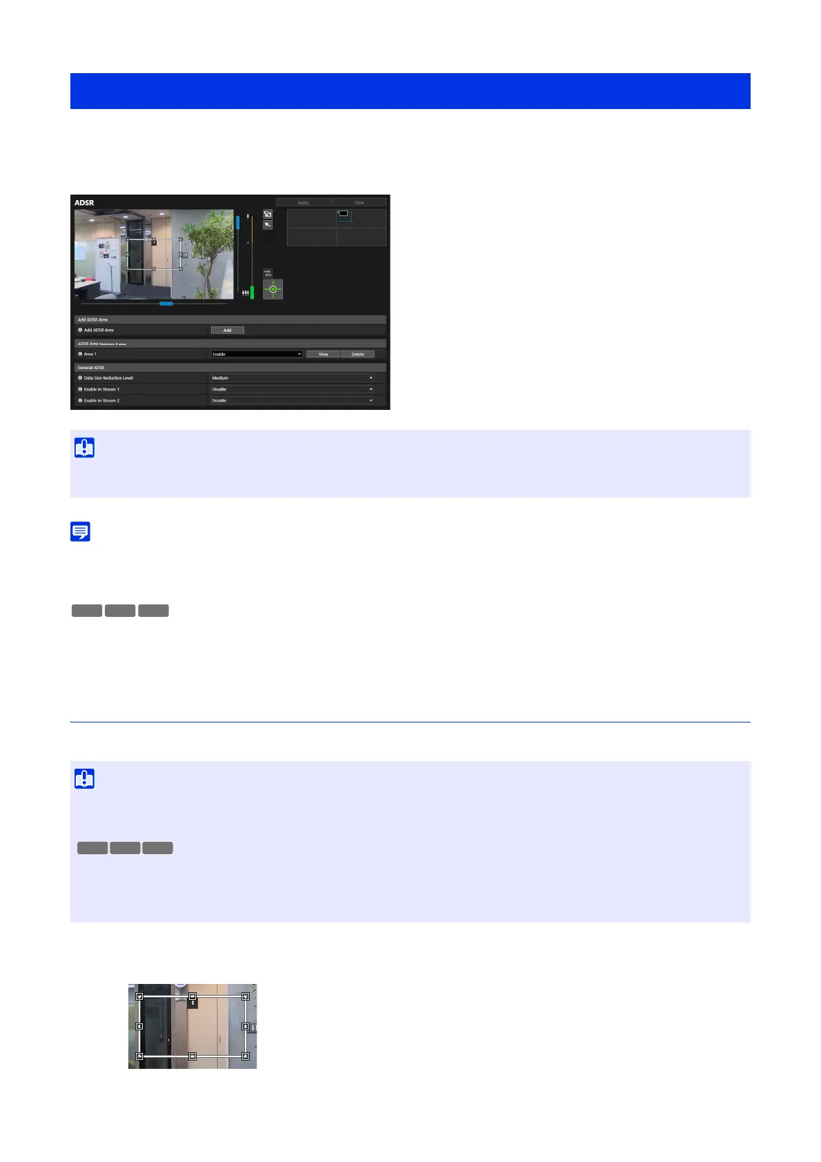 • The image quality in the ADSR area varies depending on the [Bit Rate Control] setting specified for H.264/H.265 video in [Video] >
