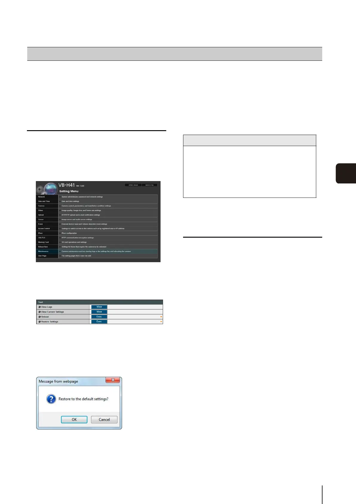 Click [Exec] under [Restore Settings].