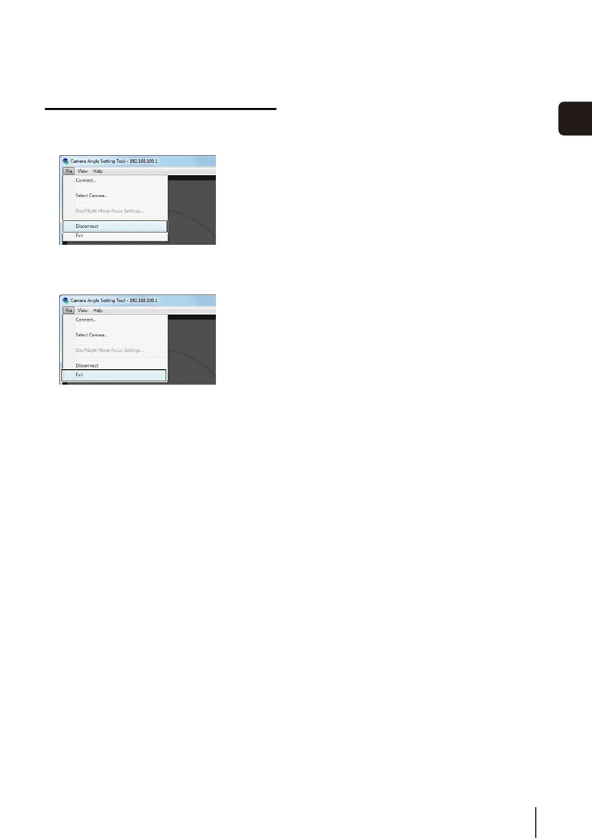 Click [Disconnect] from the [File] menu to disconnect