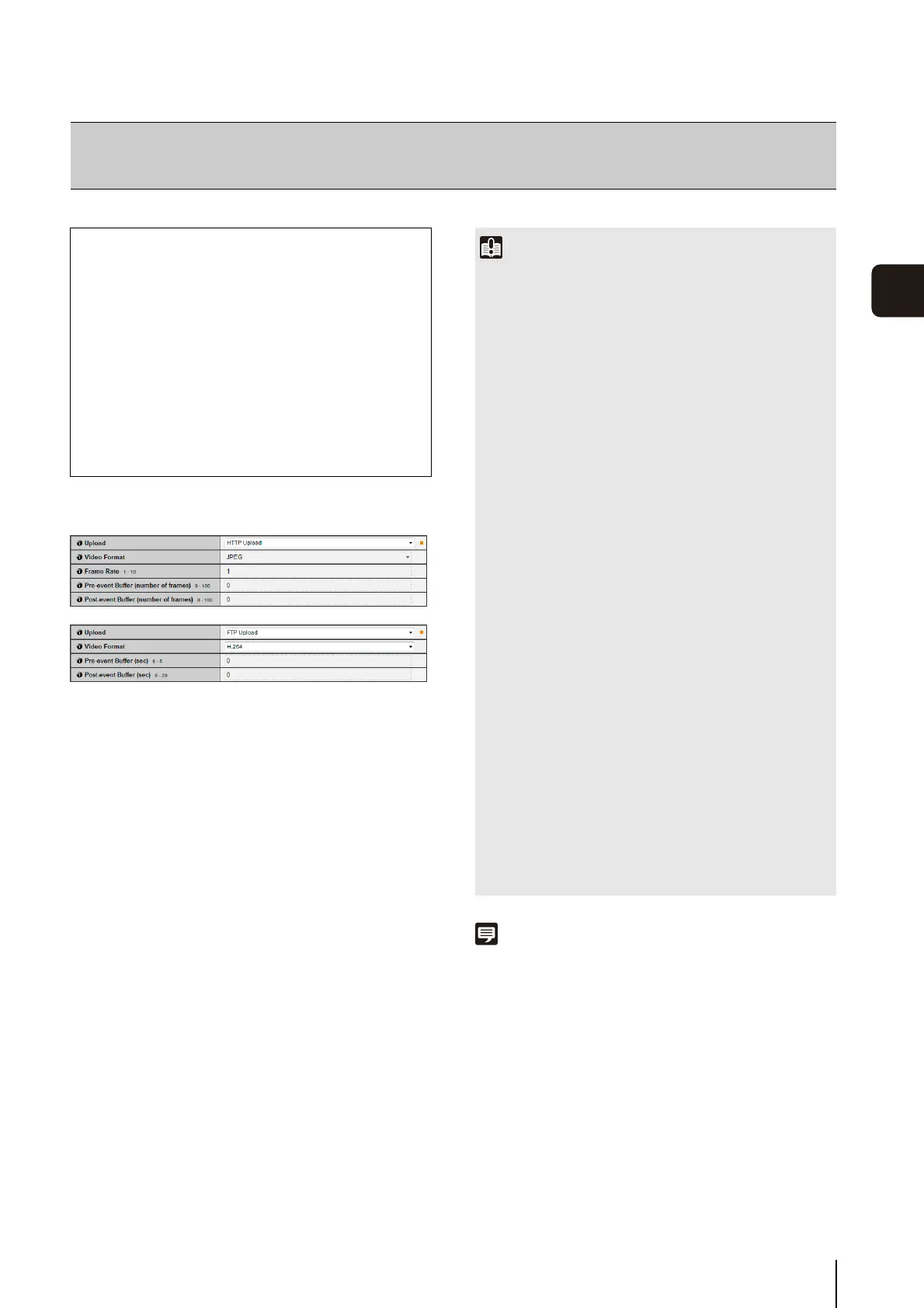 and image upload by HTTP/FTP, set [Video Size: Upload / SD