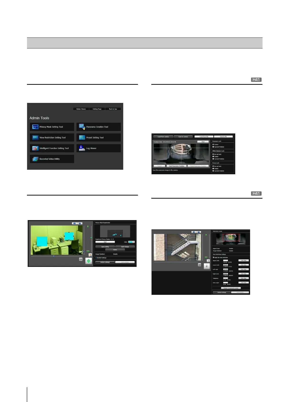 Admin Tools consists of applications for remotely making camera settings, checking operating conditions, and acquiring logs.