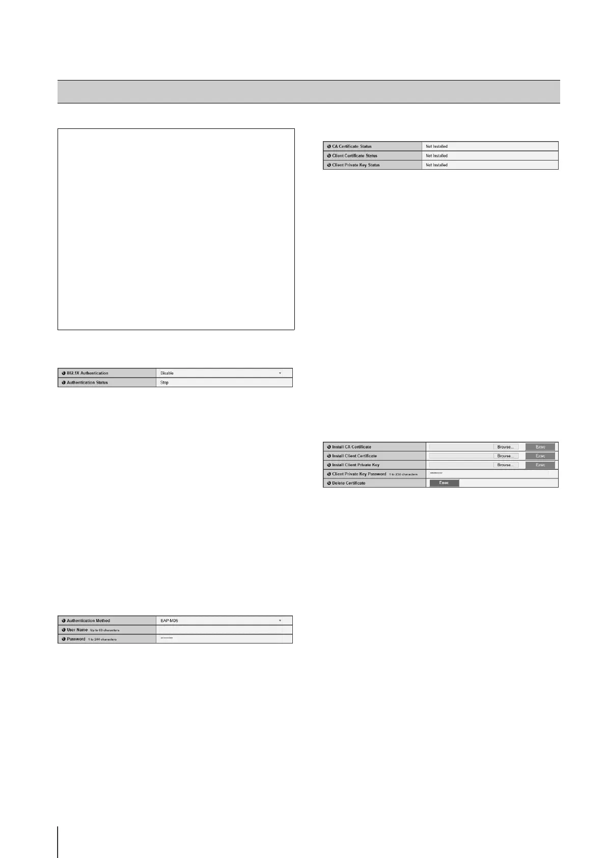 If [802.1X Authentication] is set to [Enable] and [Exec]