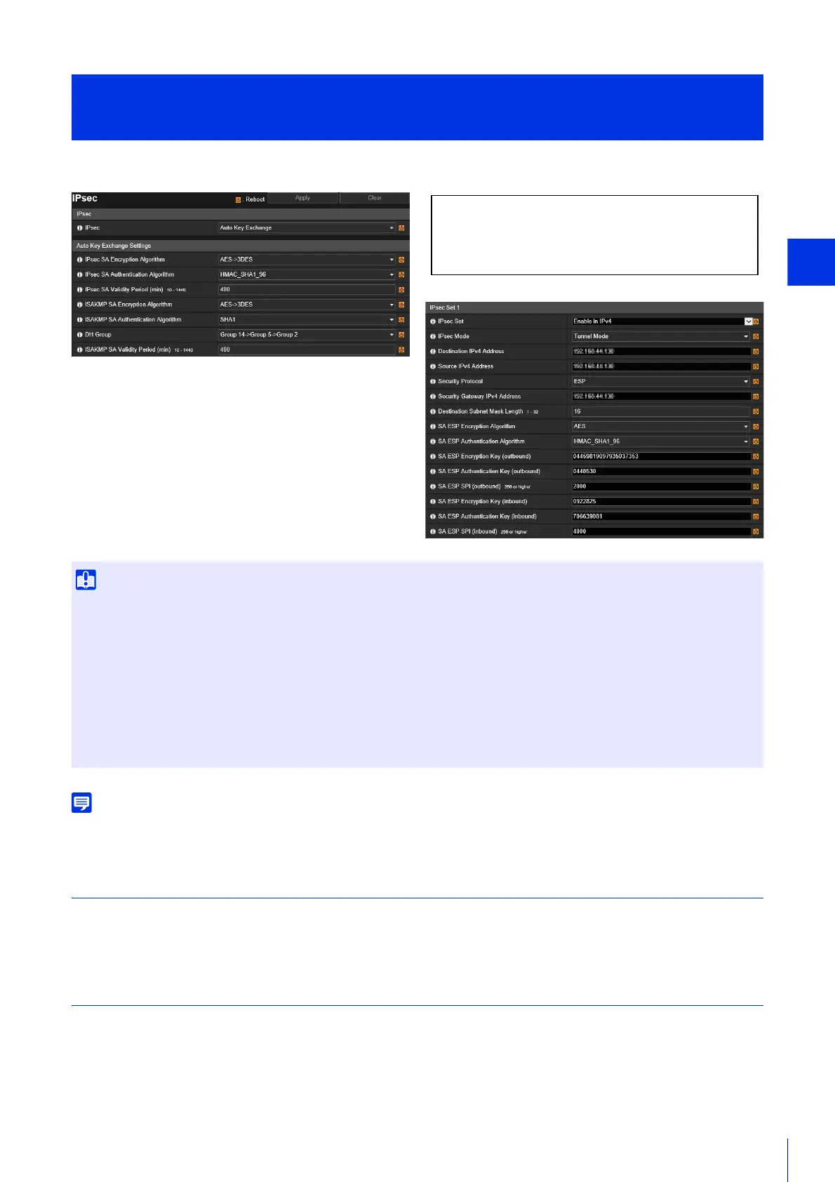 • To run this camera with IPsec, the communicating devices and network must be set beforehand. Contact your system administrator for