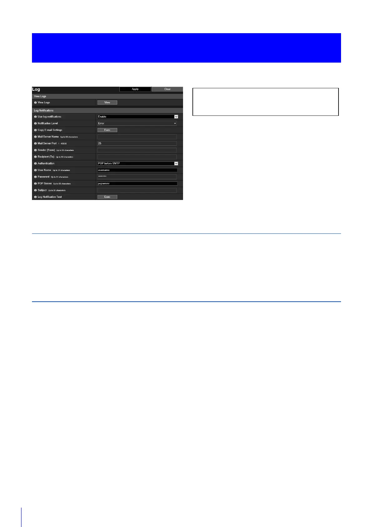 If you select [Enable], the following setting items for log notification are displayed.