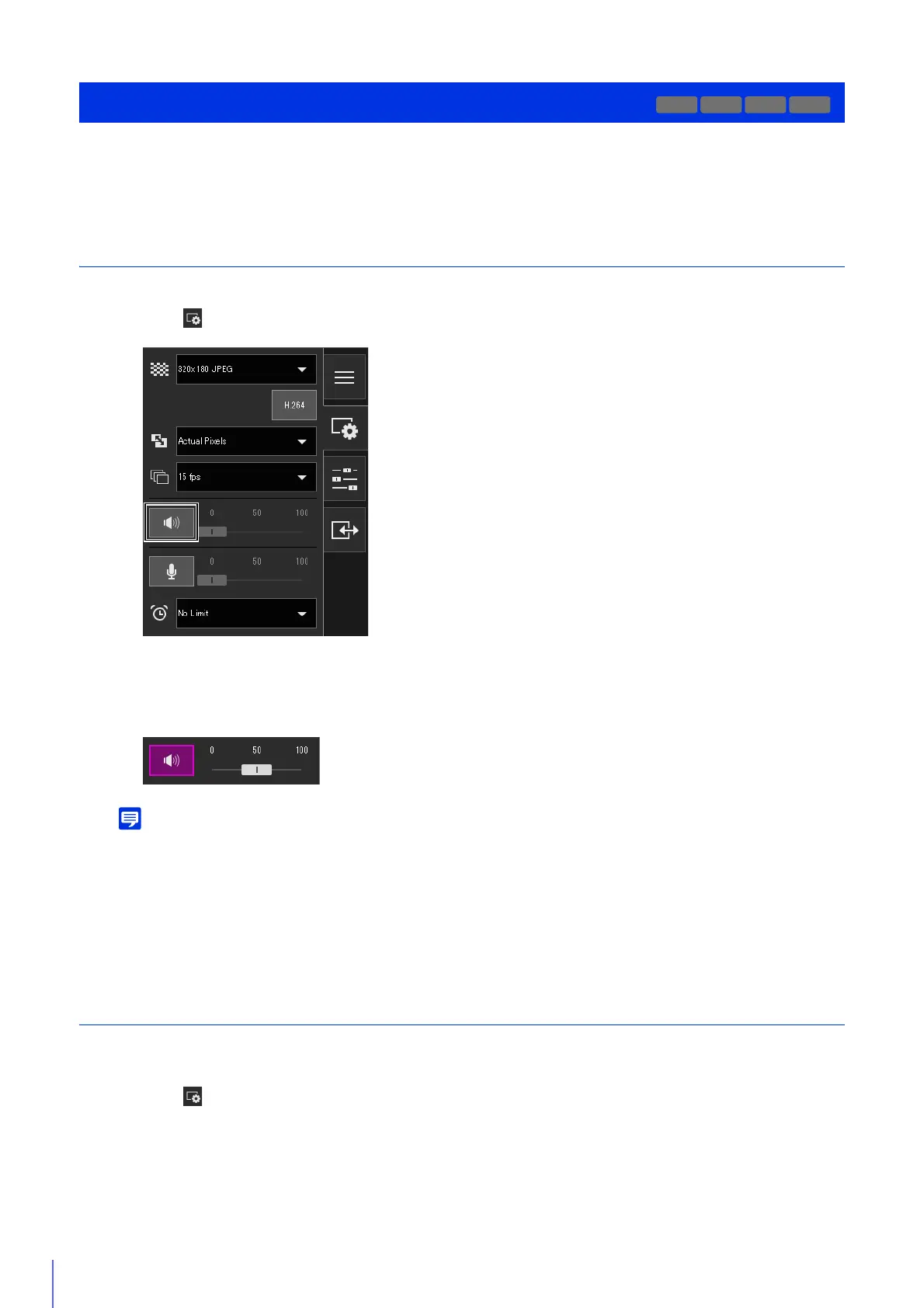 Open the [Video and Audio] menu to set the audio reception from the camera and the audio transmission from the Viewer