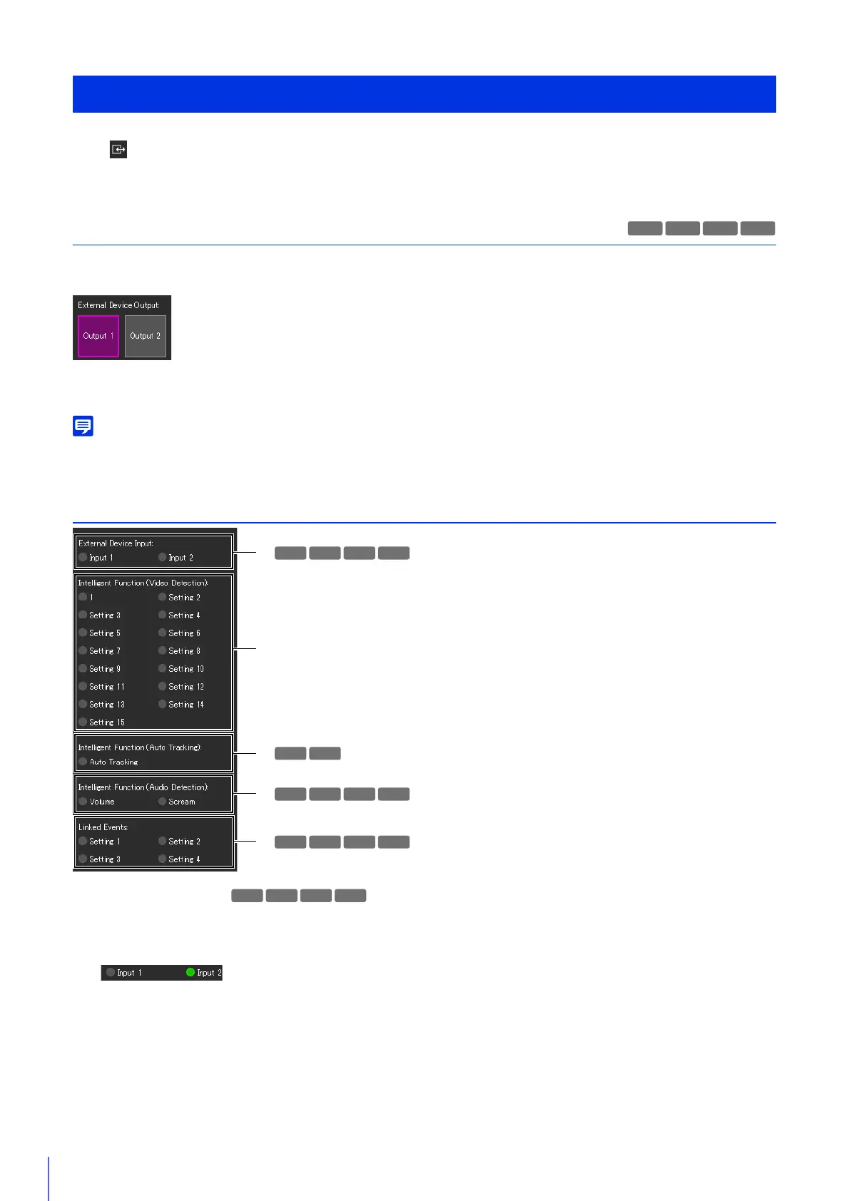 Displays the input status of the external device set in [Event] > [External Device] (P. 162) on the Setting Page.