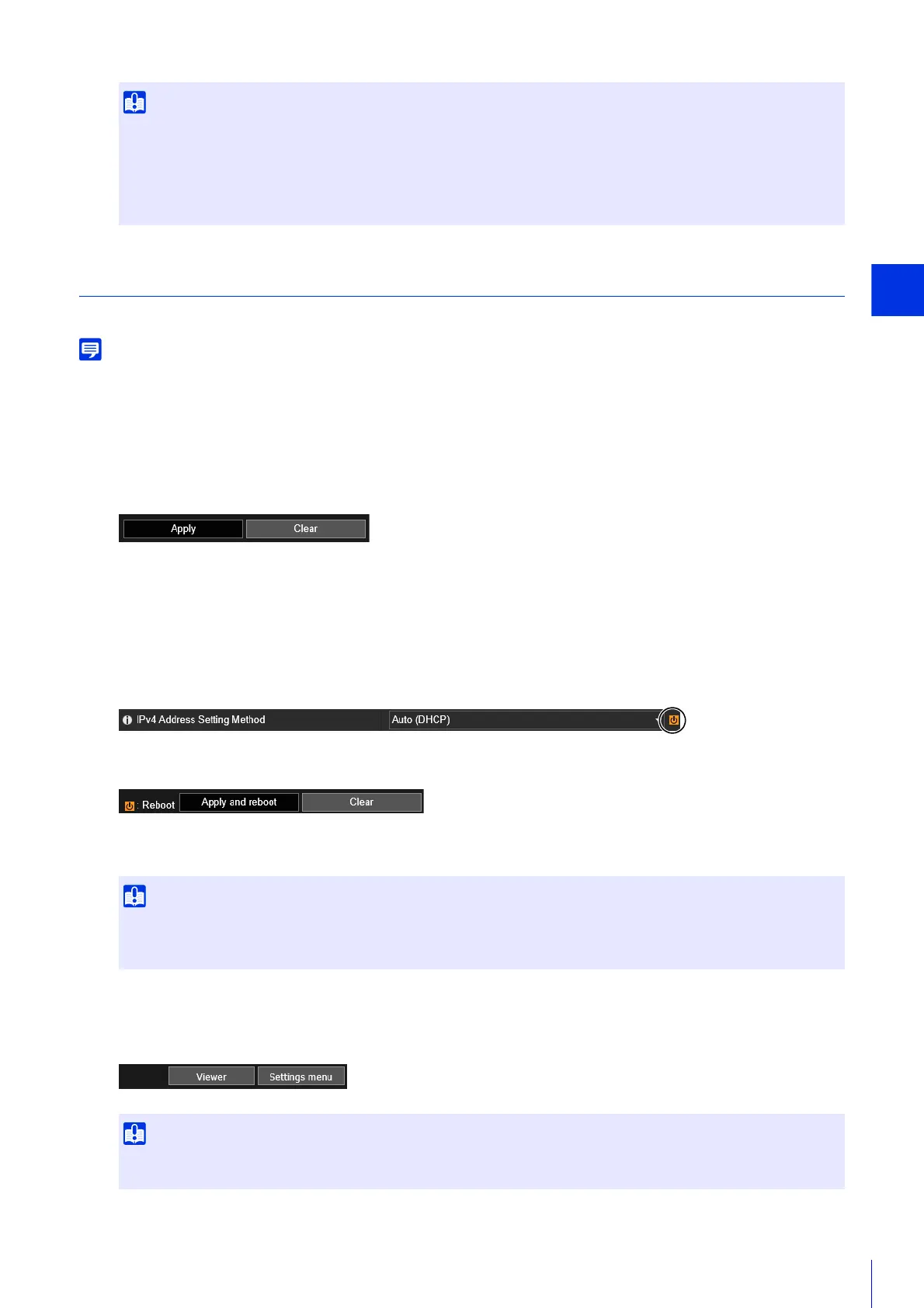 Setting changes will be lost if you navigate to another Setting Page without clicking [Apply] or [Apply and reboot]. However,