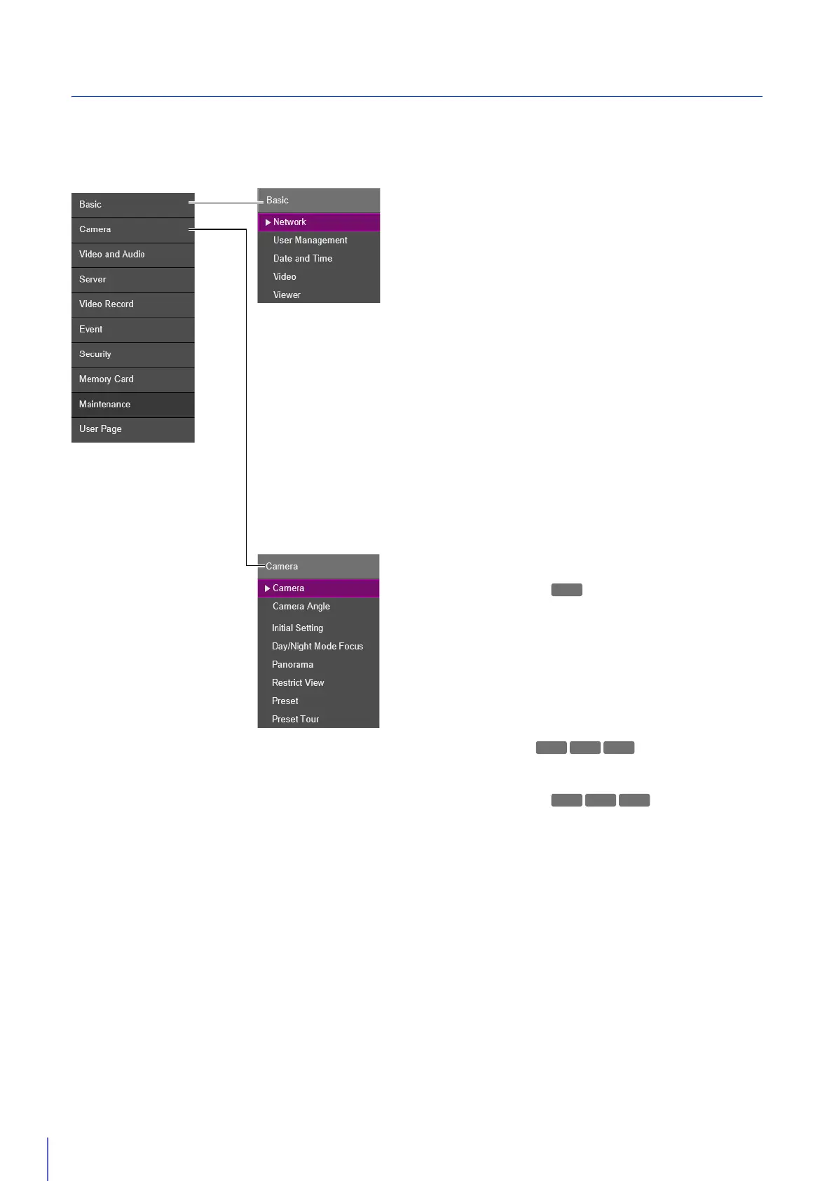 common. The functions can be set in any of the menus and the settings will be reflected in all of the [Video] submenus.