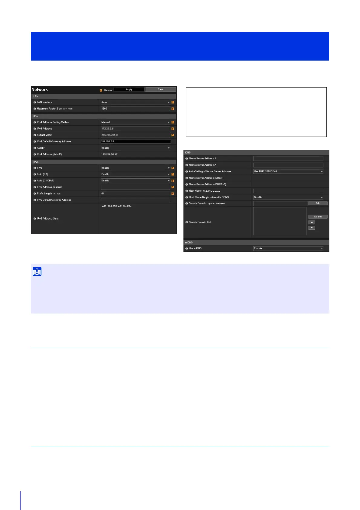 Settings for using IPv4 to connect to the camera. The IPv4 address can be assigned by the DHCP server automatically or