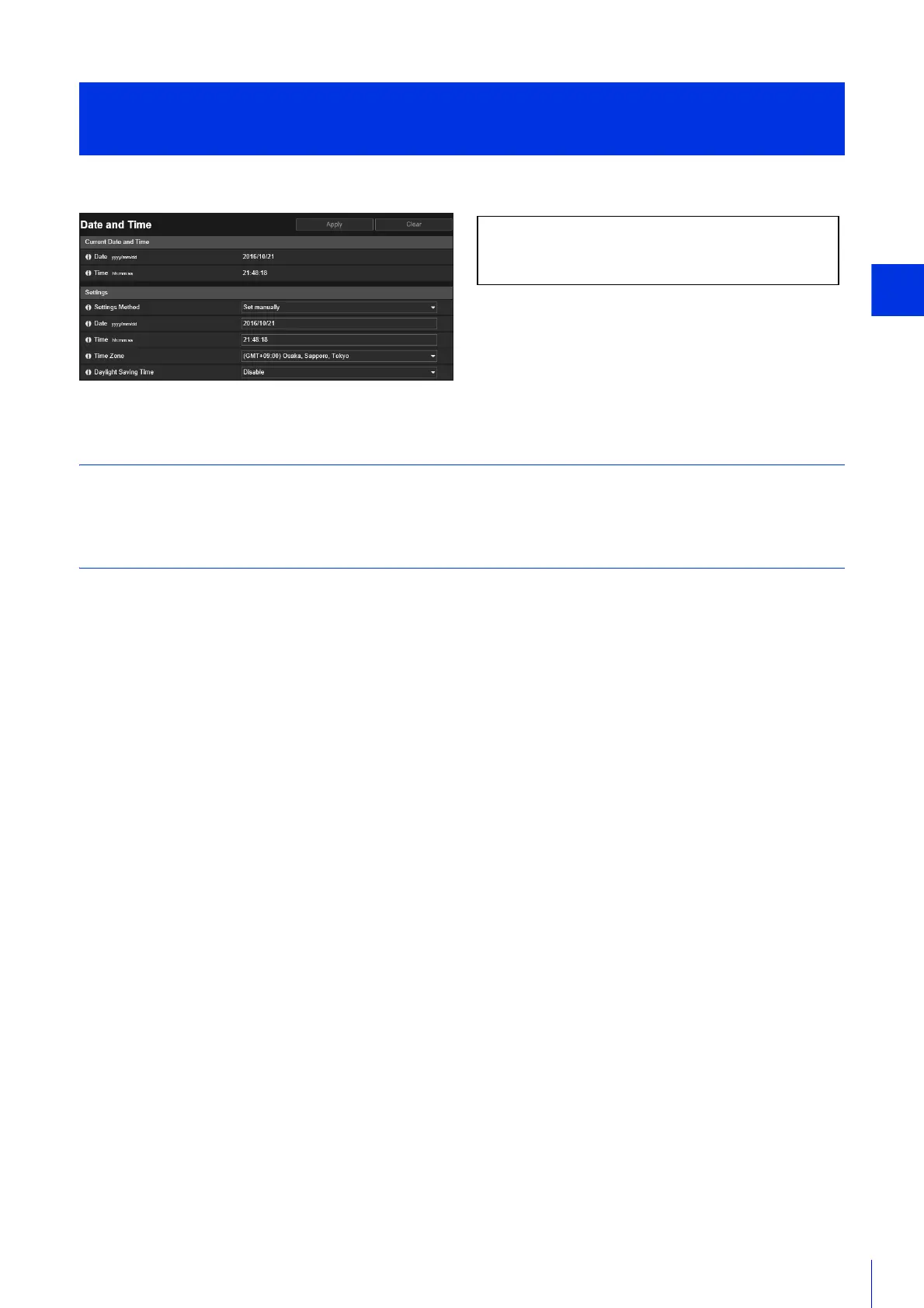 Synchronize with the time of NTP server specified in the displayed [Set NTP Server Settings Automatically].