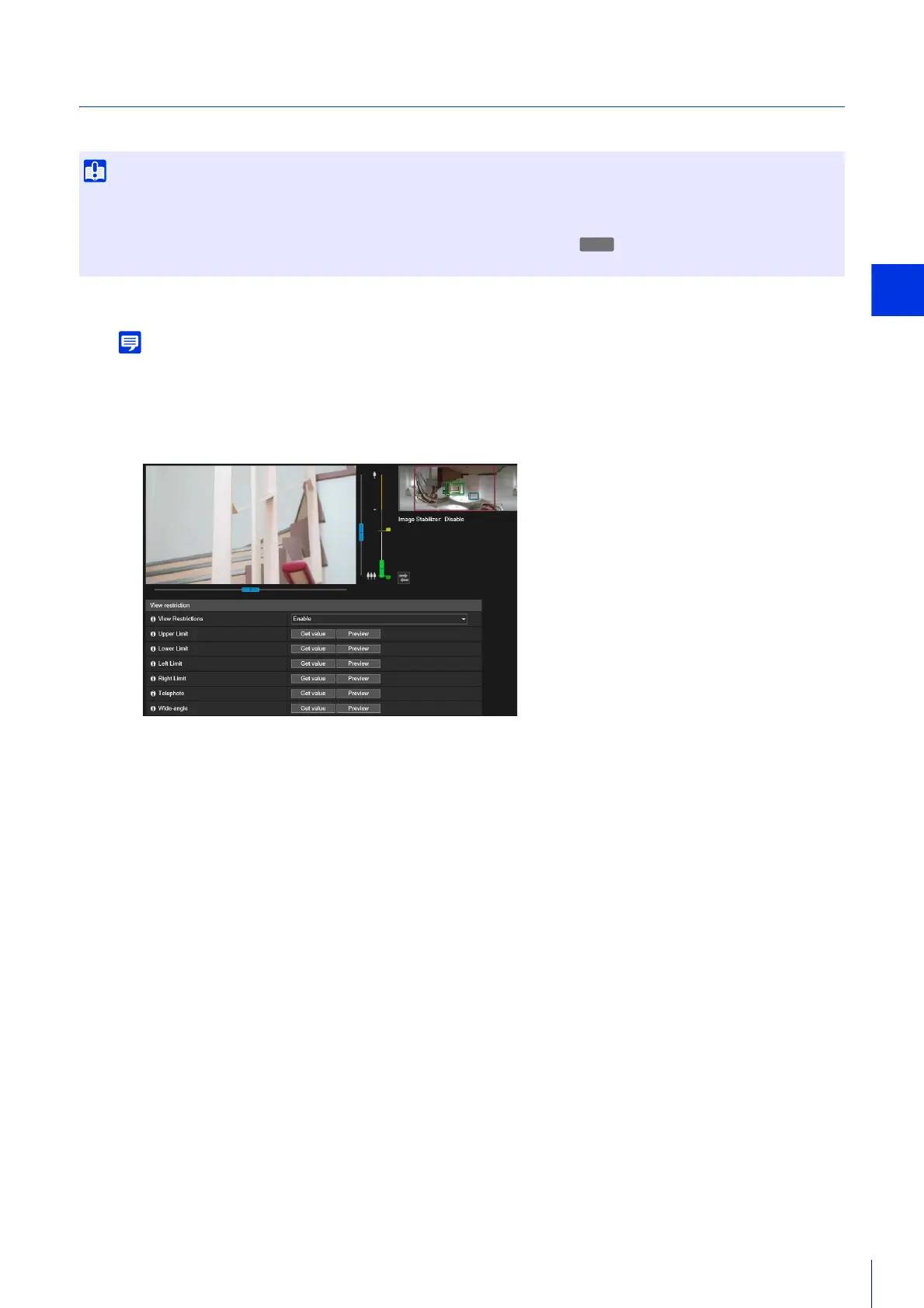 • If you have changed how the camera is installed, reconfigure the view restriction settings.