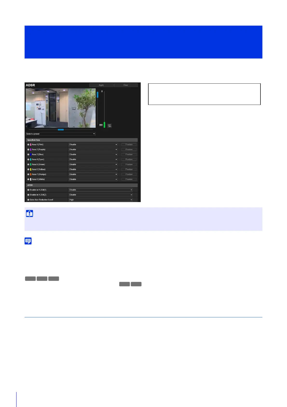 • The image quality of the specified area depends on the [Bit Rate Control] setting in [Video] > [H.264(1)] or [H.264(2)].